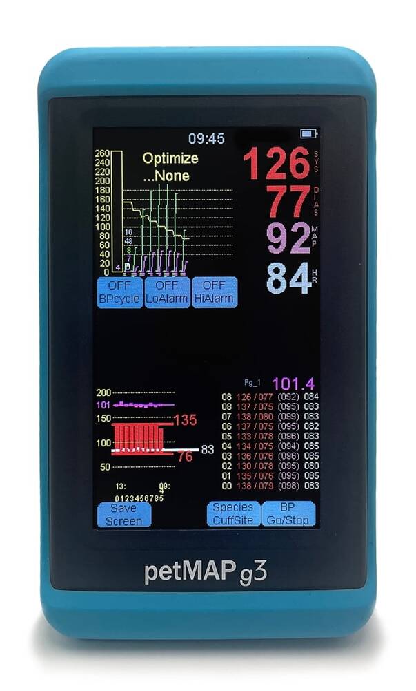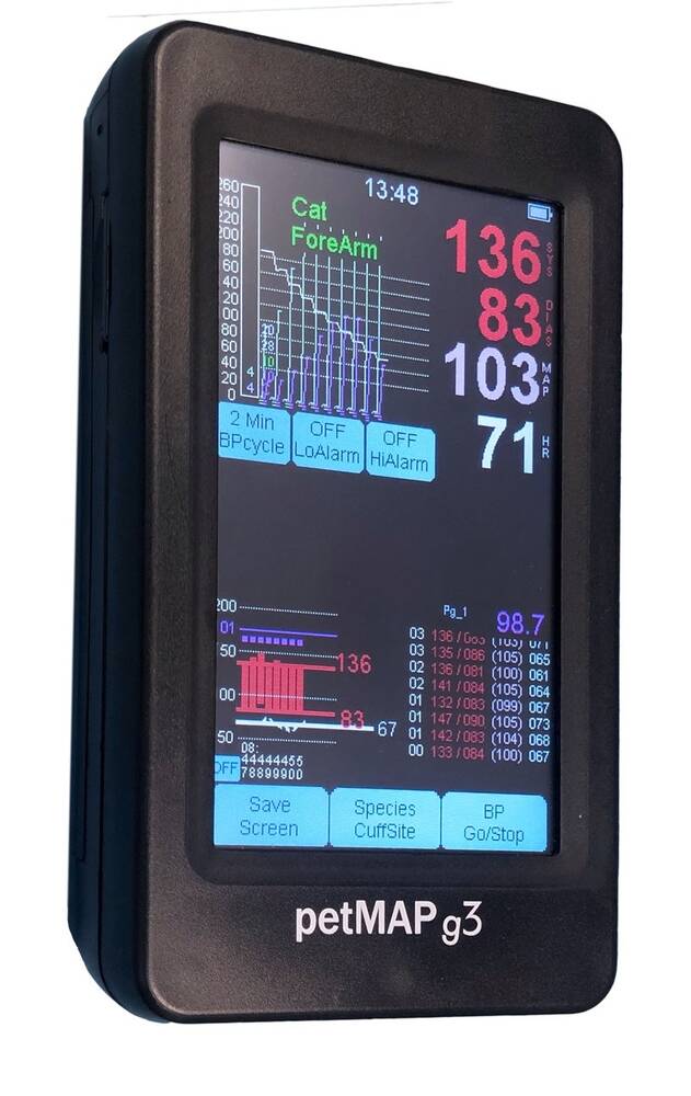 PetMAP g3 — це портативний апарат для моніторингу НВАТ/ЧСС/ТЕМП у тварин, розроблений компанією CardioCommand. Він призначений для використання у ветеринарній медицині для точного вимірювання кров'яного тиску, серцевих скорочень та температури у собак, кішок та інших домашніх тварин. Цей прилад може бути особливо корисним у ветеринарних клініках, де потрібно швидко та точно визначити стан здоров'я тварини.
