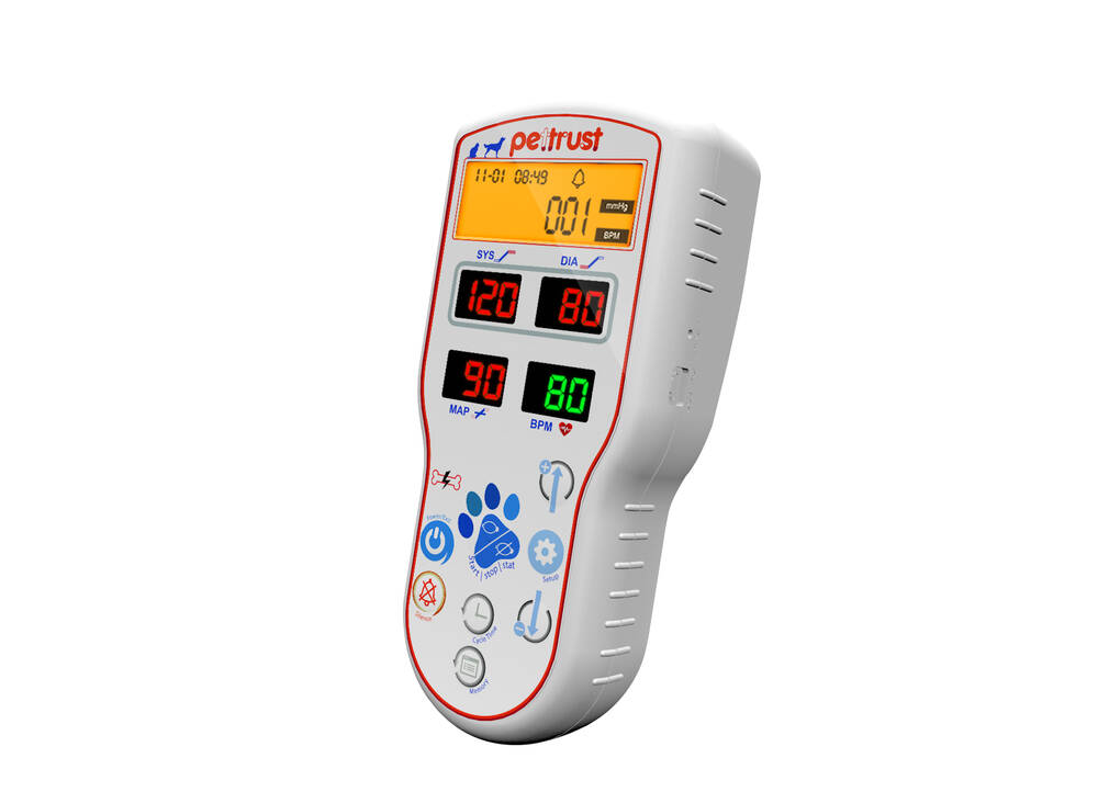 Переносний ветеринарний тонометр Pettrust дозволяє ветеринарним лікарям і фахівцям швидко, просто і надійно проводити діагностику та вимірювати артеріальний тиск у домашніх тварин.