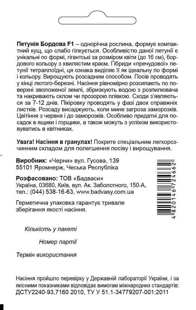 Увага! Насіння в гранулах! Покрите спеціальним легкорозчинним складом для полегшення посіву і вирощування.