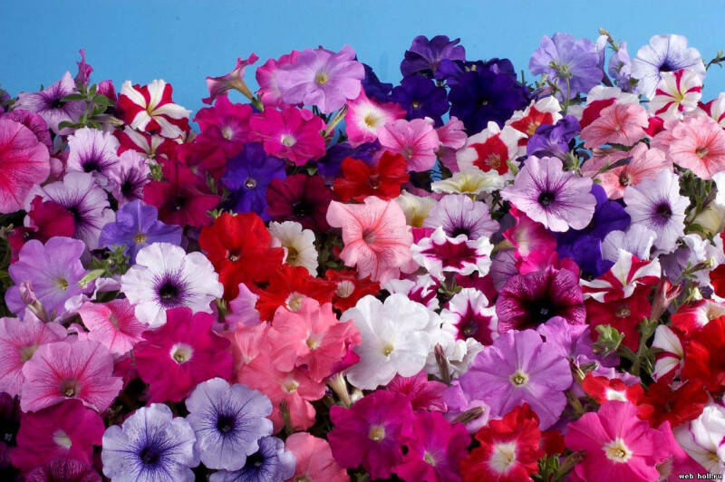 Петунія Ламбада F1 - петунія багатоквіткова, карликова. Висота рослини в горщику 15-20 см, у відкритому грунті 25-30 см. Вона формує компактні, добре розгалужені кущі шириною 25-35 см. Квіти великі, яскраві, діаметром 5-7 см. Насіння висівають в теплиці з лютого по квітень, в ящики з вологим грунтом. Сіють не густо, злегка притискаючи насіння до землі, не присипаючи його грунтом. Посіви накривають склом або поліетиленовою плівкою і регулярно поливають. Зацвітають дуже рано, і дружно цвітуть до заморозків. Стійкі до несприятливих погодних умов. Рослини зберігають компактну форму і декоративність протягом усього сезону. Петунії будуть відмінною прикрасою клумб, рабаток, бордюрів, горщиків, вазонів і балконних ящиків.