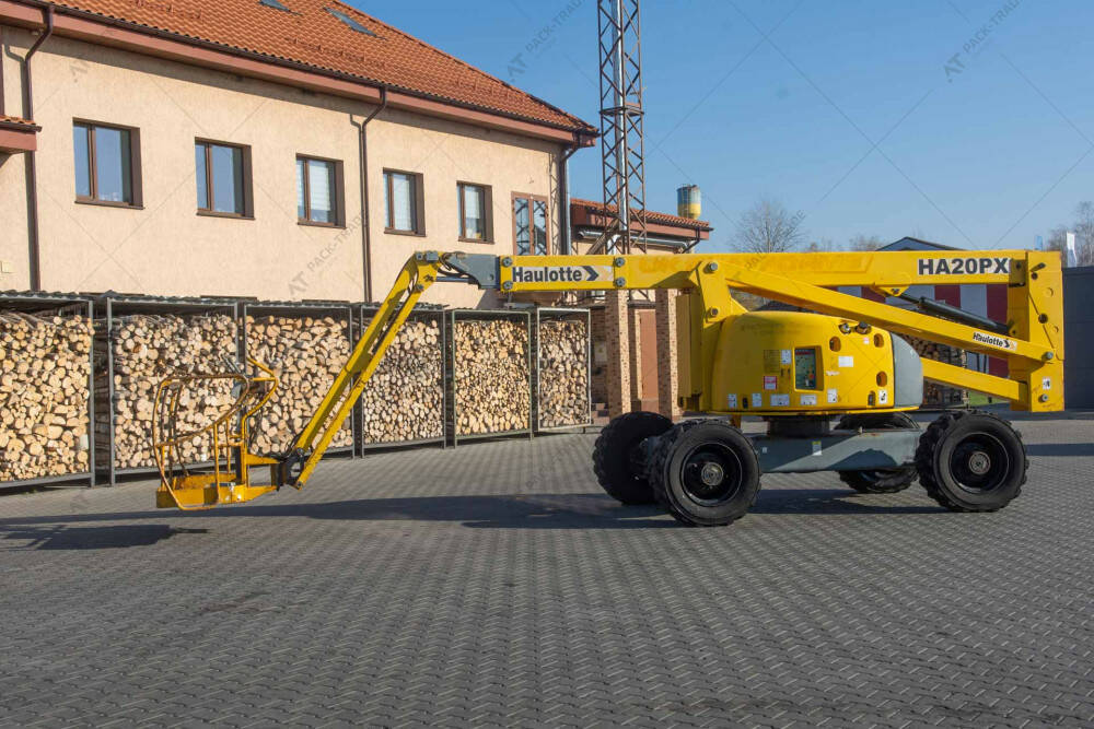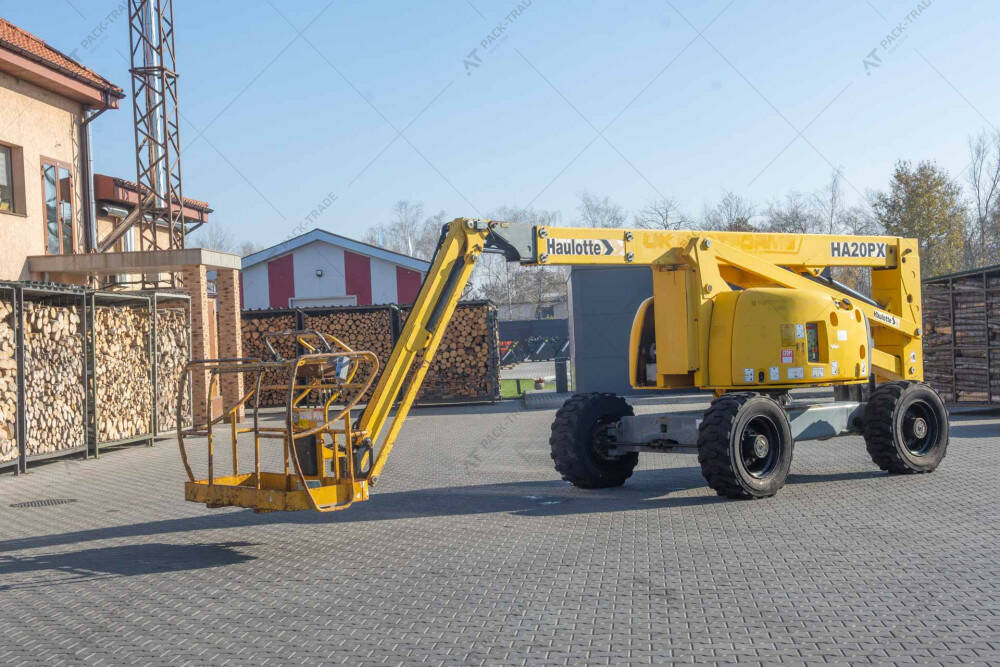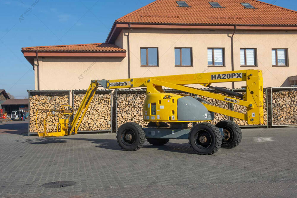 Підіймач б/в Haulotte HA20PX, 2008 р/в. Напрацювання — 4148,2 м/г. Двигун — 43,1 кВт. Загальна висота — 2,6 м. Висота підйому — 20 м. Вантажопідйомність — 230 кг. Вага — 11710 кг. Шини: 385/65-22,5.