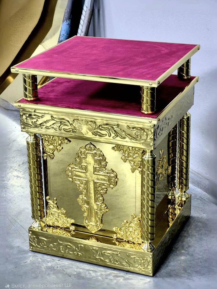 Ми пропонуємо як дуже красиві святкові варіанти з литтям, карбуванням, золоченням, так і простіші підставки для повсякденного зберігання церковного начиння.