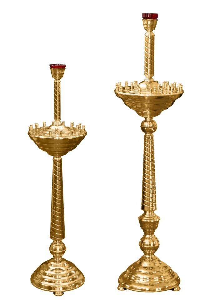 У кожному храмі обов'язково є як мінімум один свічник, на якому завжди горять свічки парафіян. Як правило, свічник вибирається під оздоблення церкви та головних церковних меблів. Найчастіше це латунь, як один з найбільш практичних, недорогих і красивих матеріалів. В асортименті є свічники з тримачами і під пісок, дитячі, виносні, з карбуванням, з латуні та булату. Ви також можете замовити індивідуальне виготовлення свічника, надавши нам свої креслення або ескізи.
