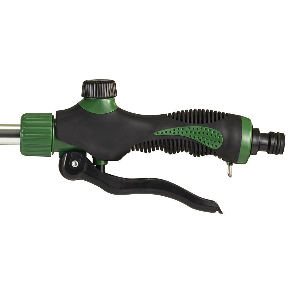 Пістолет-розпилювач 10 режимів з подовжувачем 700мм (металевий) GRAD (5012155) застосовується для поливу рослин, квітів і овочів в важкодоступних і віддалених місцях. Двокомпонентна рукоятка виконана з ударостійкого міцного пластику з гумовим покриттям, має поглиблення під пальці рук для зручності надійного захоплення і комфорту при роботі з інструментом.
