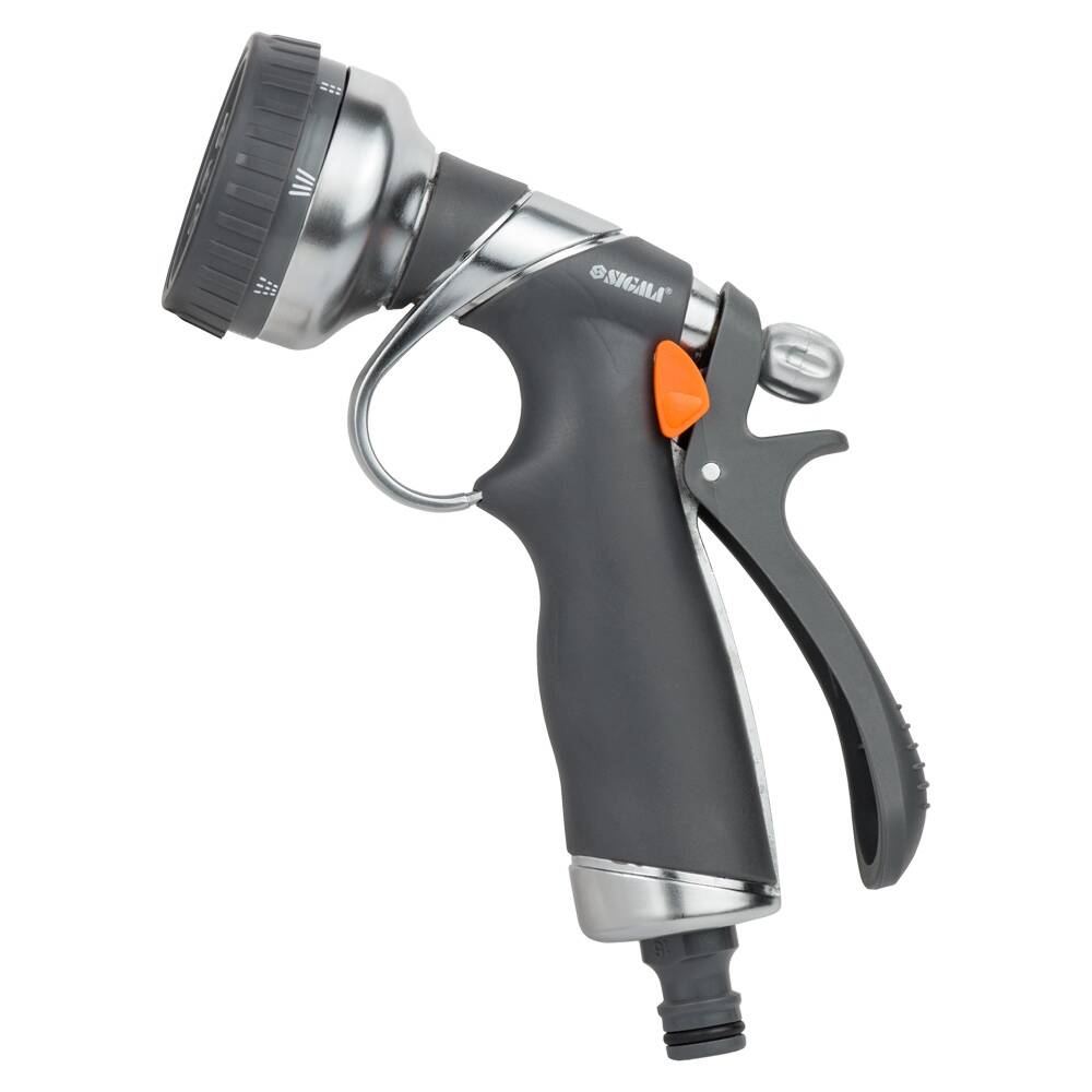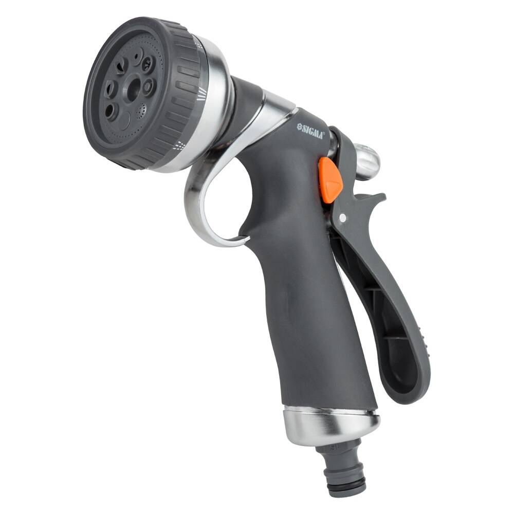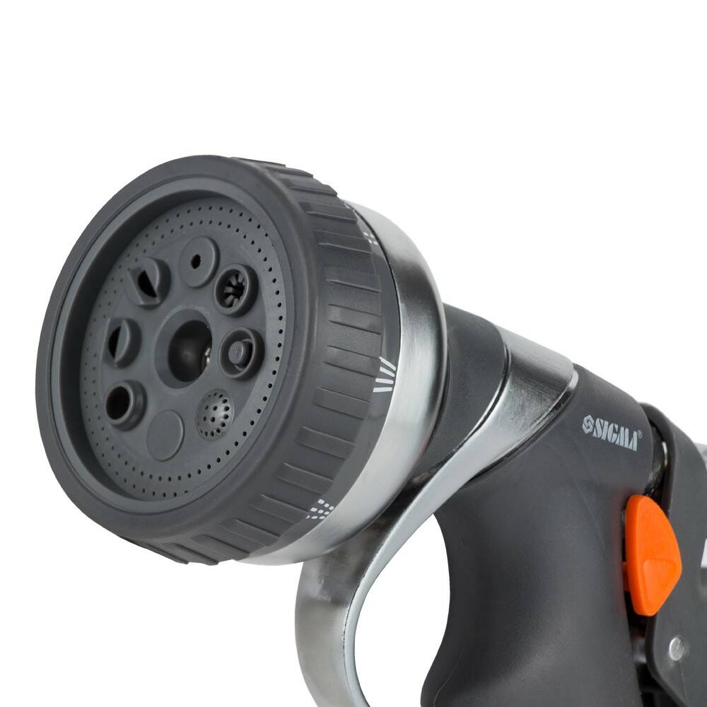 Пістолет-розпилювач 8-ми режимний (AL+TPR) FLORA (5011314) призначений як насадка на поливальний шланг через швидкознімний конектор. Дозволяє регулювати напрямок і ширину вихідного струменя під час поливу. Можливе застосування для чищення садових інструментів, обладнання та меблів.