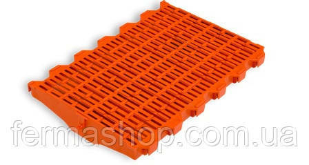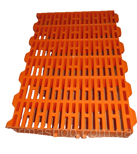 Данная щелевая решетка используется под свиноматок Характеристики: Пластиковые решетки используются, в основном для свиноматок. Они изготовлены из блок-сополимер-пропилена импортного производства. Стандартный размер решетки - 600х400х90 мм., ширина щели-перемычки 9/12 мм. Нагрузка на одну решетку: Максимальная - 650 кг, рабочая до 350 кг. Преимущества: Полы не отбирают тепло у животных, снижают дополнительные затраты на отопление. Улучшают санитарно-гигиенические условие для содержания животных Устойчивые к агрессивной среде и низкой температуре, аммиаку. Легко подвергаются чистке и мойке. Надежность в эксплуатации. Снижение заболеваемости, чистый пол, чистые сухие поросята, отсутствие трудозатрат.