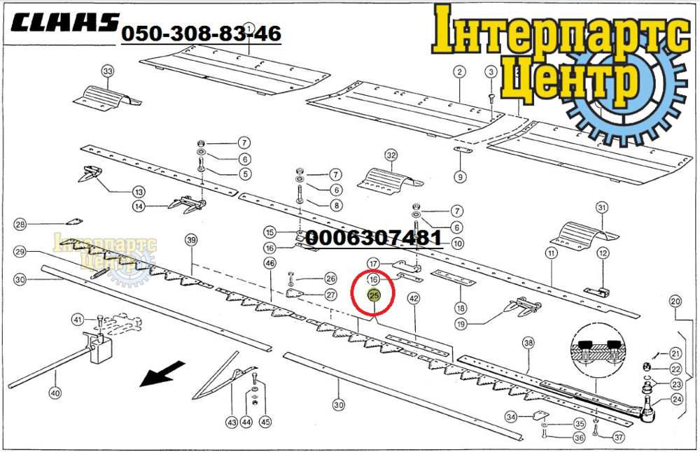 Пластина ножа - Проміжний елемент жатки - Накладка жатки. Запчастина зернових жаток комбайнів Claas (довжини: 18'-30', 3.0 - 9.0м), (моделі: Hydro, Solo, Vario, Vario Hydro, Vario Solo).