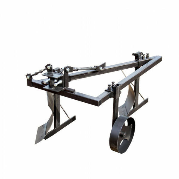 Рама плуга для мототрактора виготовлена зі сталевого профілю 40 × 40 × 3 мм, оснащена двома талрепами для регулювання положення плуга в поздовжній і поперечній площині.