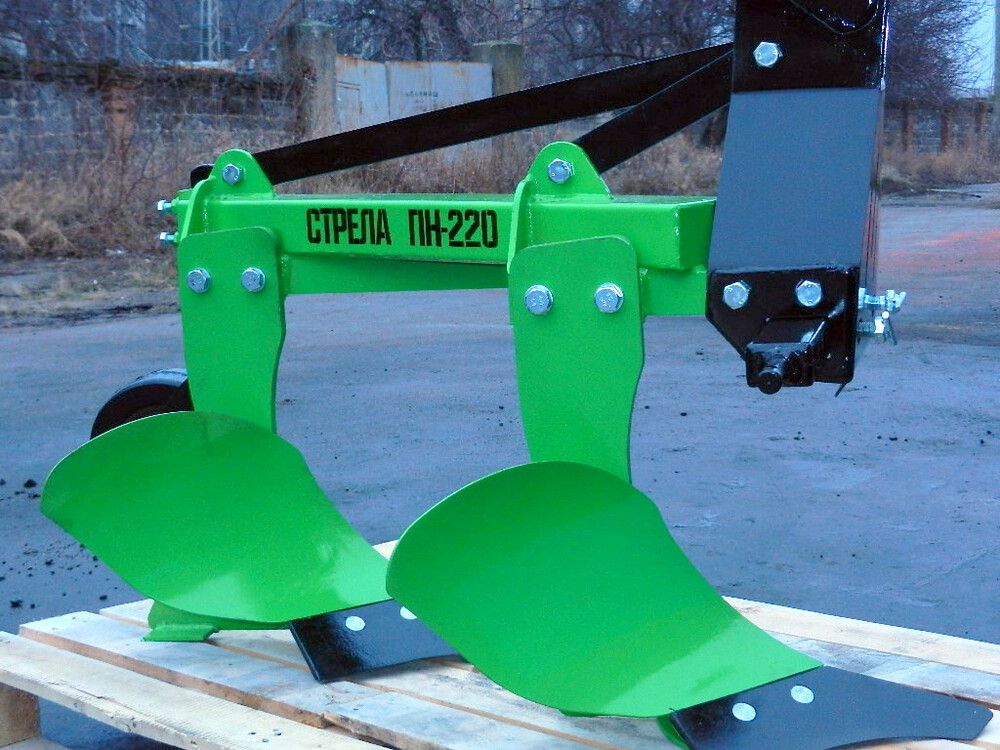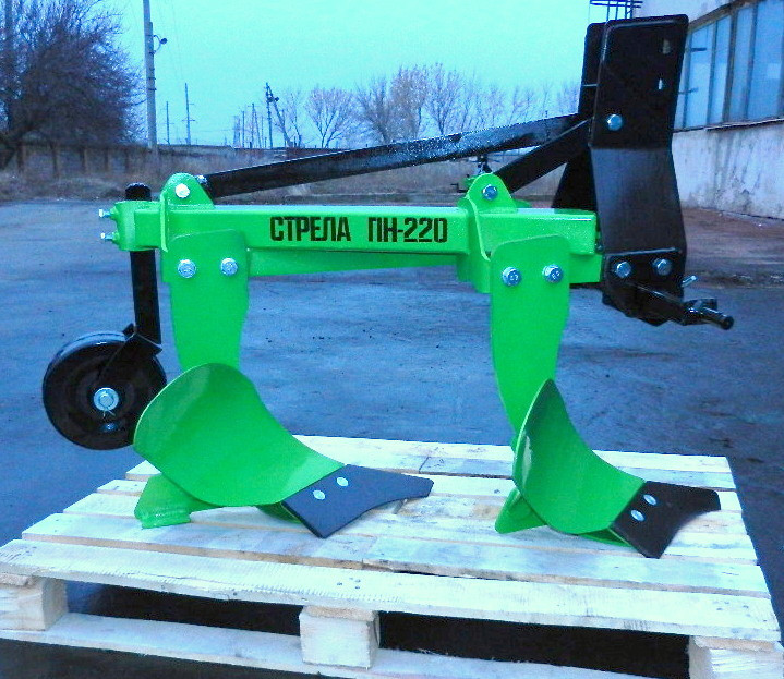Плуг СТРЕЛА ПН-2-20 (для трактора от 16 л.с.) - двухкорпусный плуг ширина захвата 40 см., высота плуга 60 см., глубина вспашки до 27 см. Вес - 72 кг