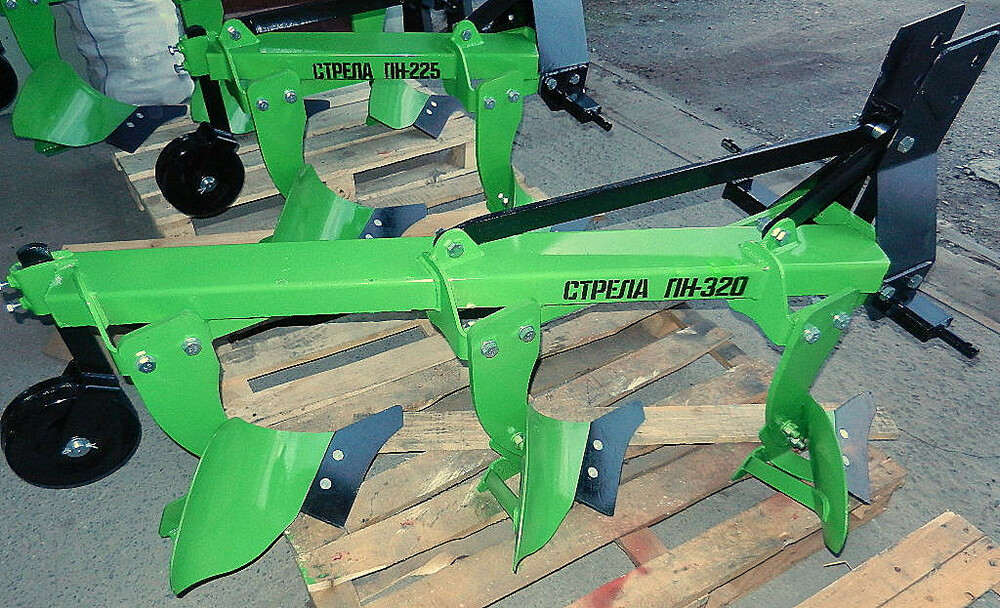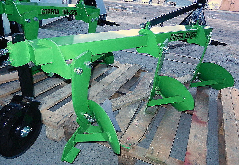 Плуг модель СТРЕЛА ПН-3-20 предназначен для минитрактора и трактора, плуг для пахоты глиняных и трудных почв. Крепится к трактору с помощью 3-­х точечной сцепки сзади трактора.