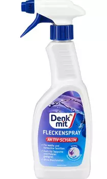 Спрей від плям Denkmit підходить для цільової попередньої обробки білого та кольорового текстилю. Він видаляє навіть важкі плями від фруктів, овочів, кави, червоного вина і жирних плям, а також від олії, сонцезахисного крему, морозива, макіяжу, помади. Він навіть пом'якшує засохлі плями та бруд, у тому числі на комірі та манжетах. Активна піна очищає всі текстильні матеріали, оббивні покриття та килими, що миються без відбілювачів.