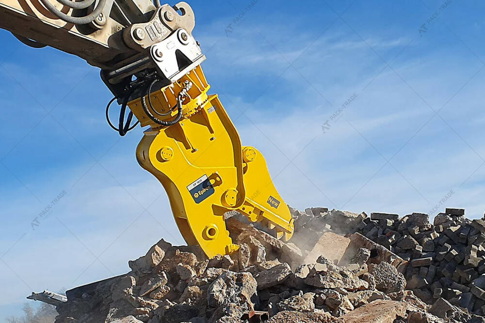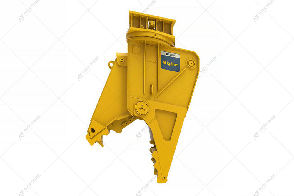 Подрібнювач Epiroc DP2000 на екскаватор. Вага машини-носія — 18-27 т. Завдяки прямим щелепам подрібнювачі серії DP добре підходять для робіт із розбирання та вторинного подрібнення як неармованих, так і армованих бетонних конструкцій. Надзвичайно міцна конструкція забезпечує тривалий термін служби подрібнювача, а компоненти, що зношуються, не важко замінити на місці проведення робіт.