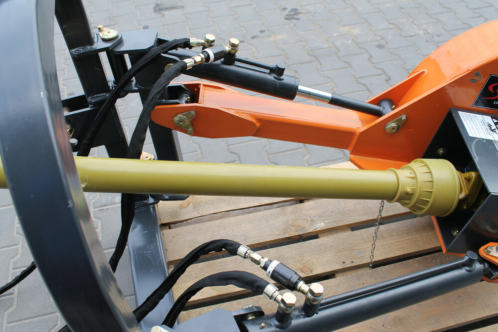 Живлення здійснюється через вал відбору потужності (ВОМ), а бічний і вертикальний рух контролюється гідравлічною системою трактора через два потужні циліндри.