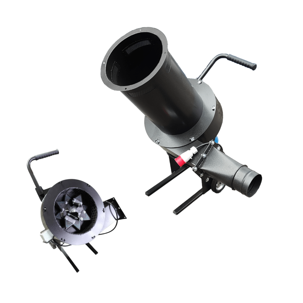 Універсальний подрібнювач сіна та зерна з примусовим видувом - незамінне обладнання як для маленьких домашніх, так і для невеликих фермерських господарств. Подрібнювач оснащений равликом і пропелером для створення додаткового тиску і видування, а також патрубком з фланцем для зручного збору подрібненої продукції.