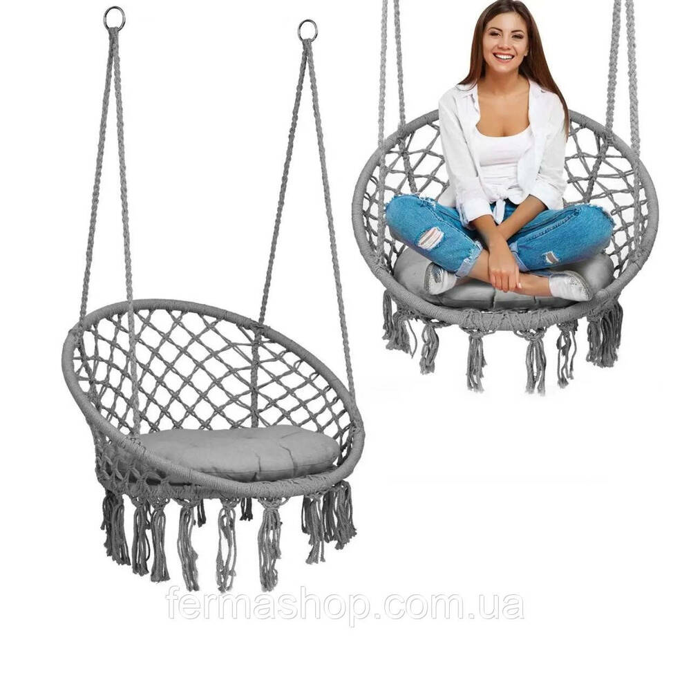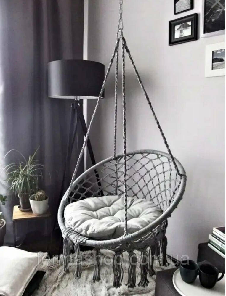 Подвесная круглая качеля кресло для дома Гнездо Аиста Серый