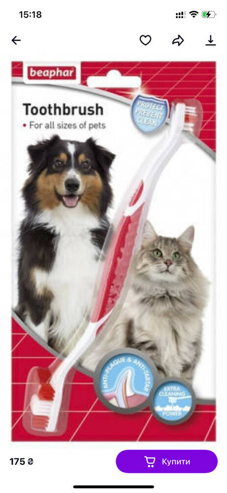 трохи зубної пасти. Не використовувати для чищення зубів собаки