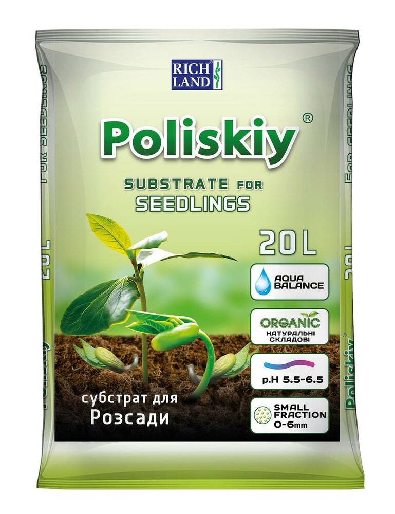 Субстрат „Поліський” для розсади– готова для використання і вирощування спеціальна суміш на основі високоякісних верхових, низинних і перехідних торфів, дрібна фракція яких збільшує площу контакту насінин і коренів з субстратом, що забезпечує кращий проріст і укорінення розсади. Призначений для висіву, пікування квітів, овочевих та декоративних культур.