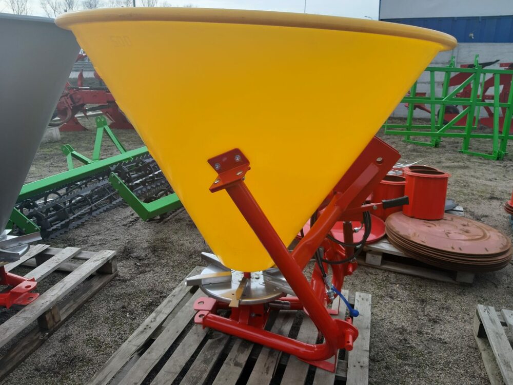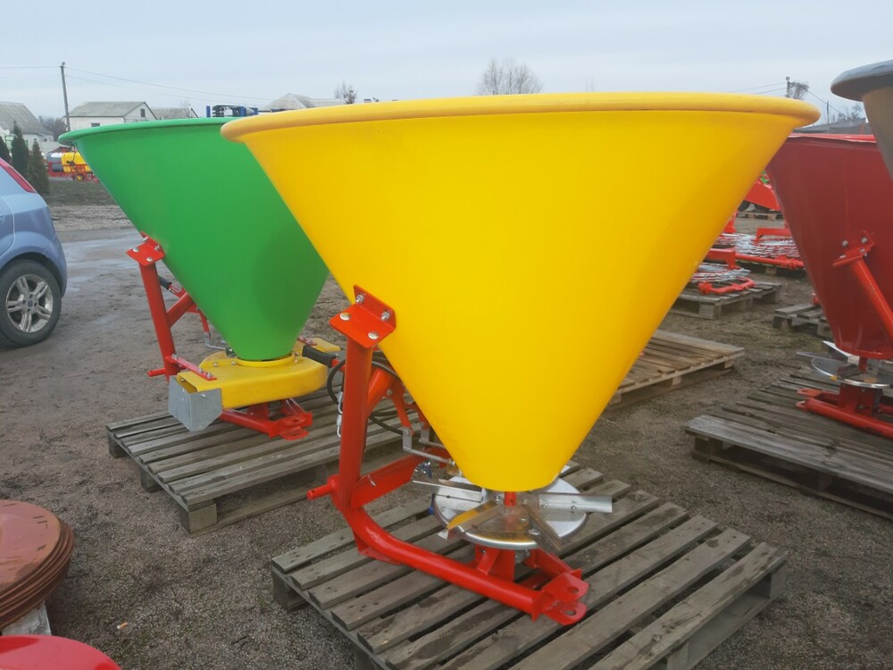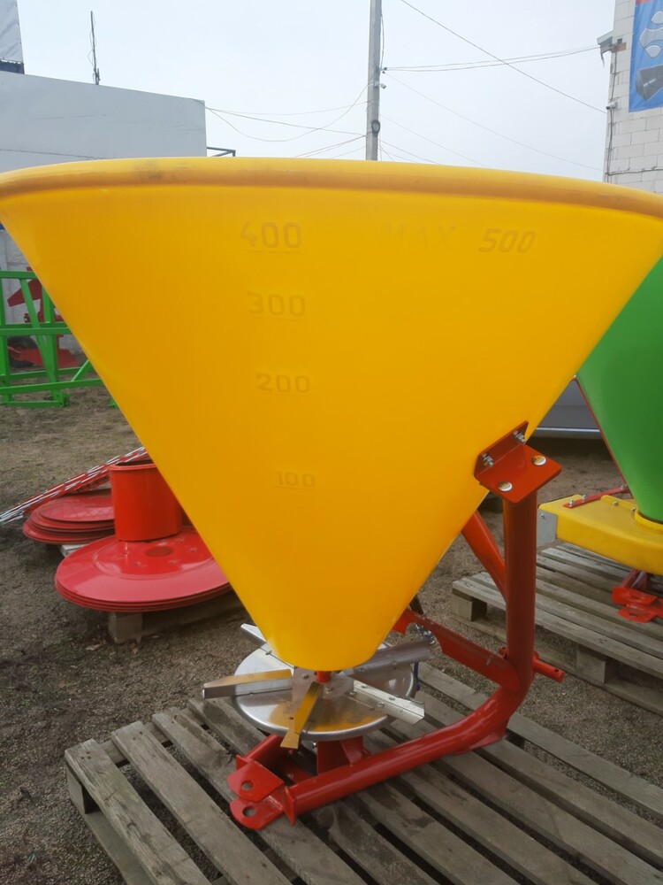 Розкидач мінеральних добрив (Польща) тракторний навісний застосовується для поверхневого внесення мінеральних добрив в гранульованому вигляді, а також для посіву зернових культур і підживлення в період вегетації, що впливає на врожайність. Завантаження машини проводиться у польових умовах. Доза внесення добрив залежить від регулювання механізму керування дозуючими заслінками і робочої швидкості руху