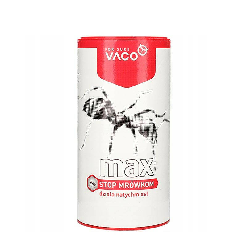 Порошок від мурах Vaco Max – це надійний засіб для швидкої та результативної боротьби з мурахами у приміщеннях і на відкритих територіях. Препарат підходить для використання в житлових будинках, квартирах, офісах, на складах, у гаражах, а також на балконах, терасах і садових ділянках. Завдяки поєднанню активної речовини та привабливої для комах приманки, засіб забезпечує комплексну дію – приваблює мурах, а потім — ефективно їх знищує.