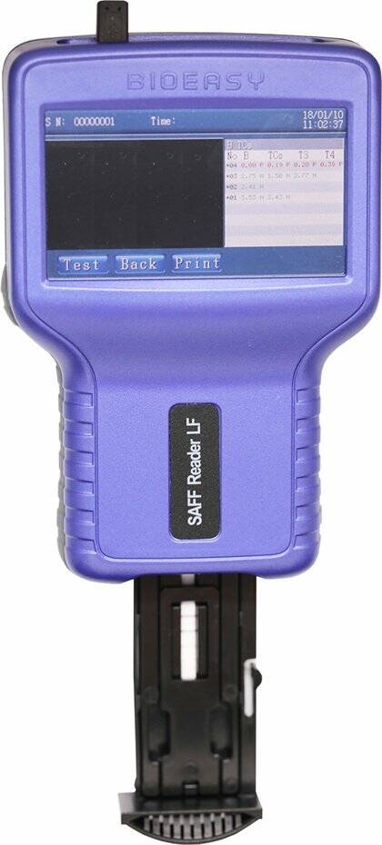 Рідер SAFF - це портативний сканер, який може застосовуватися для якісного визначення результатів тест-смужок на основі імунохроматографічного аналізу. Рекомендується для інтерпретації результатів тест-смужок Bioeasy, використовуваних при тестуванні молока, зерна, кормів, м'яса, морепродуктів і меду.