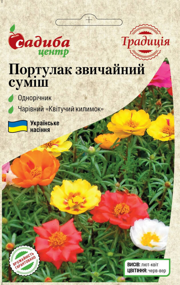 Портулак звичайний, суміш – однорічна рослина із повзучими або напівсланкими стеблами, висотою 10-15 см. Квіти діаметром 3-6 см, розміщені по дві-три в розгалуженнях стебла з надзвичайним різноманіттям кольорів. Насіння висівають у лютому-квітні в горщики які накривають плівкою, або склом. Безпосередньо у відкритий грунт висівають у квітні-травні. Насіння проростає протягом 1-2 тижнів. На постійне місце рослини висаджують коли минає загроза заморозків. Світлолюбна, посухостійка рослина, квіти відкриваються тільки на яскравому сонці.