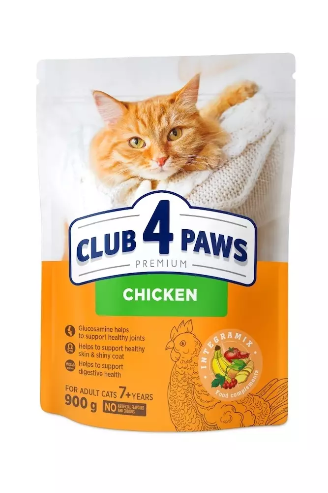 Повнораціонний сухий корм CLUB 4 PAWS (Клуб 4 Лапи) Преміум з куркою для кішок від 7 років, 900 г