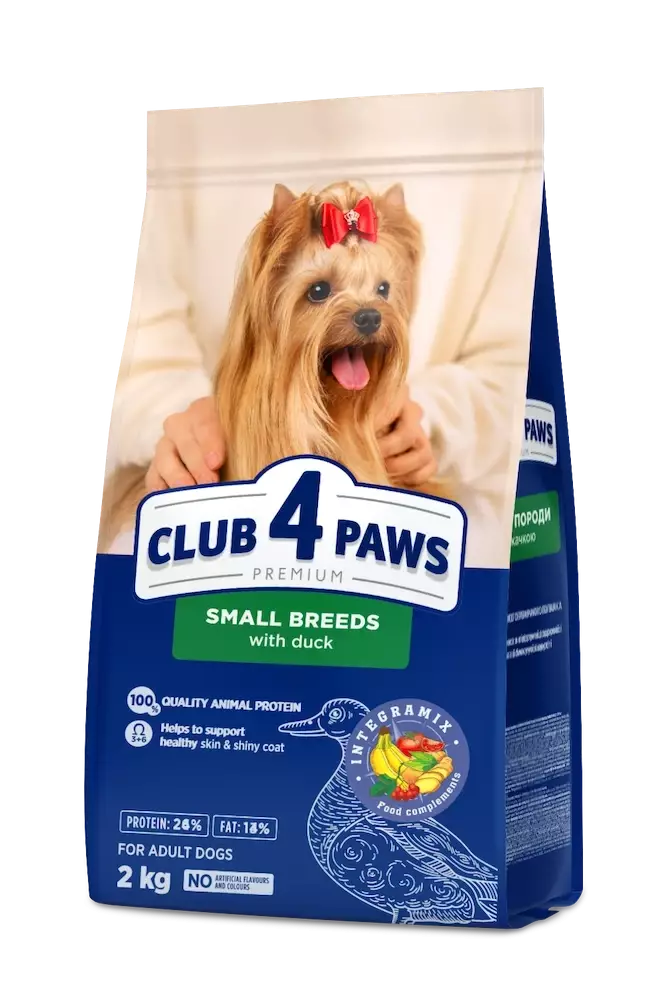 Повнораціонний сухий корм для дорослих собак CLUB 4 PAWS (Клуб 4 Лапи) Преміум для малих порід з качкою, 2 кг