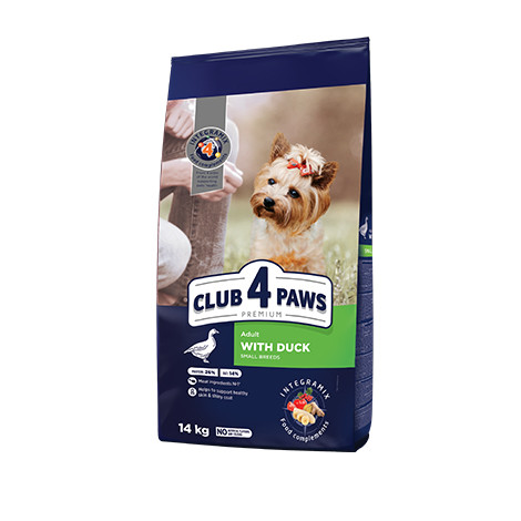 Повнораціонний сухий корм для дорослих собак CLUB 4 PAWS (Клуб 4 Лапи) Преміум для малих порід з качкою, 14 кг