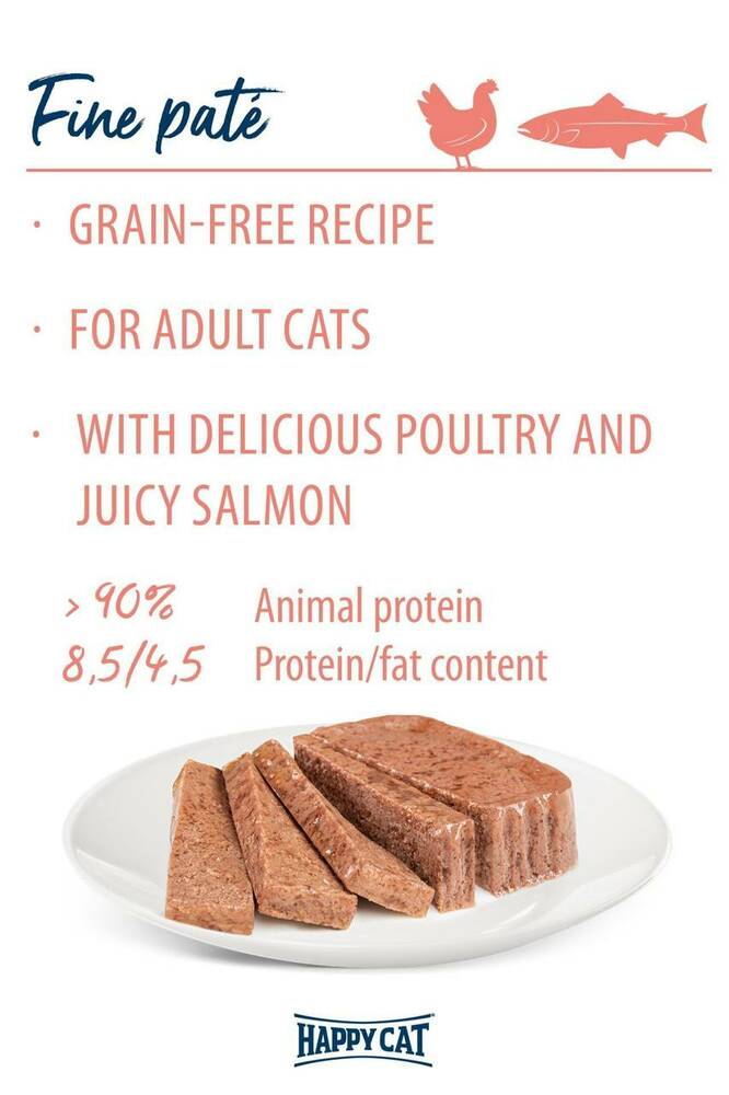 Happy Cat Minkas Duo з птицею та ягням - це чисте задоволення з високоякісних інгредієнтів для дорослих кішок у віці від 1 року. Вологий корм поєднує в собі два різних смаки та дві різні текстури. Один шар консервів - це смачний паштет, а другий - м'ясні шматочки в желеподібному соусі.