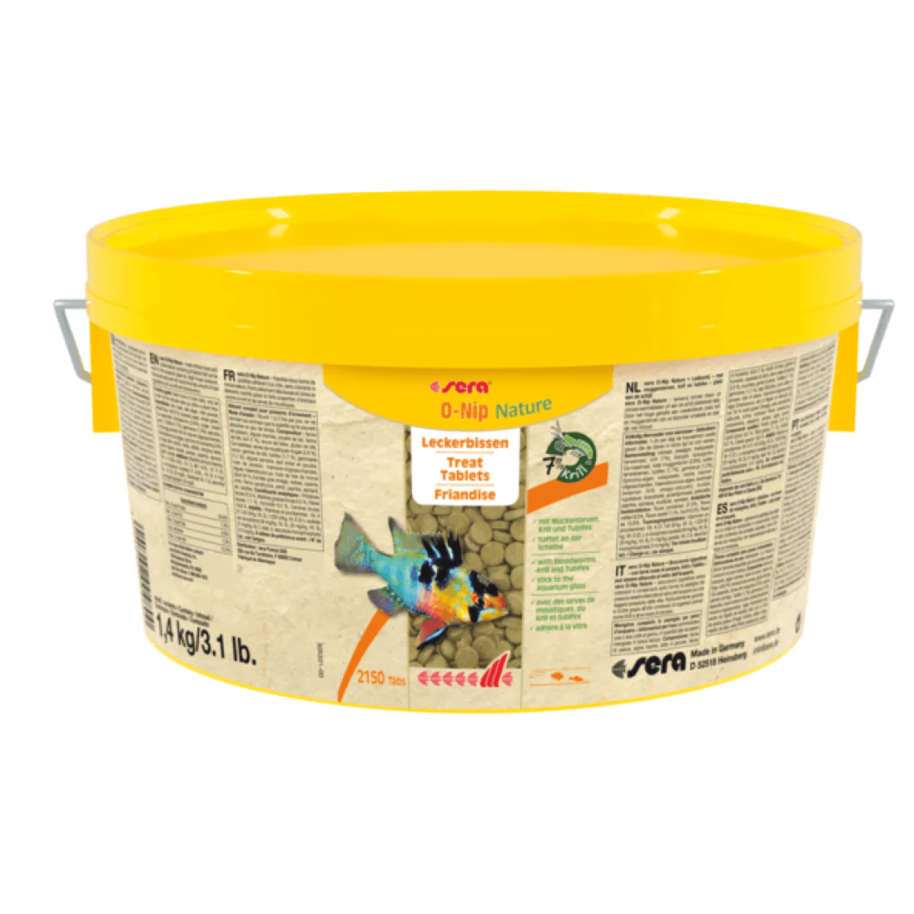 Sera O-Nip Nature - ласощі без барвників і консервантів, виготовлені з ретельно виготовлених пігулок, які прикріплюються до скла акваріума легким натисканням пальця. Це дає змогу легко спостерігати навіть за полохливими рибами під час годування. Клейкі таблетки характеризуються високою часткою харчових тварин: крім личинок комарів і трубочника, Sera O-Nip Nature також містить 7% криля. Завдяки цим інгредієнтам таблетки дуже багаті і особливо цінні для харчування, відповідного видам рибок. Натуральні інгредієнти та високий вміст легкозасвоюваного білка сприяють здоровому розвитку, чудовому зовнішньому вигляду та поведінці, що відповідає виду.