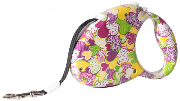 Поводок-рулетка стрічка кольорові сердечка (5м*40кг) FD808-5MP-B