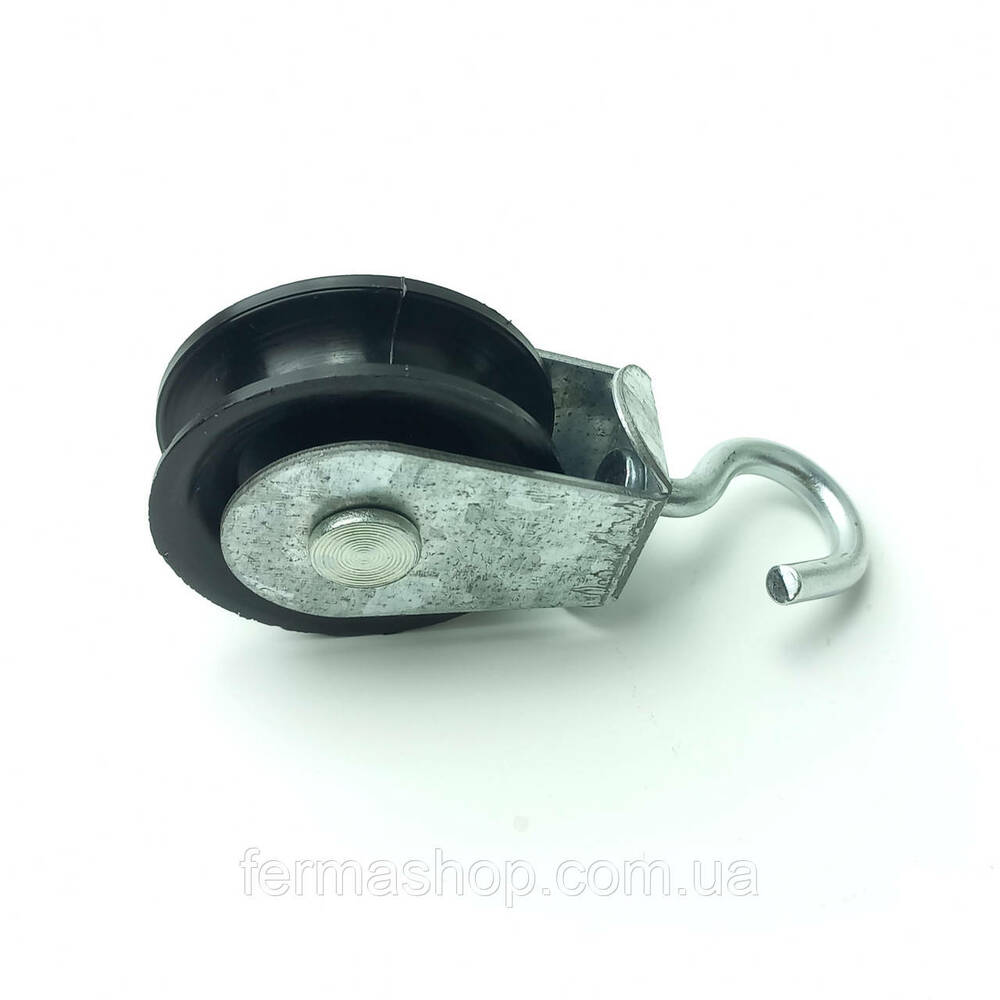 Ролик пластиковый применяется для подвешивания линии ниппельного поения. Характеристики: легко крутится при нагрузке Корпус и крюк металлический оцинкованный Поворотный ролик для подвеса ф-45 мм. Изготовлен из высококачественного полипропилена.