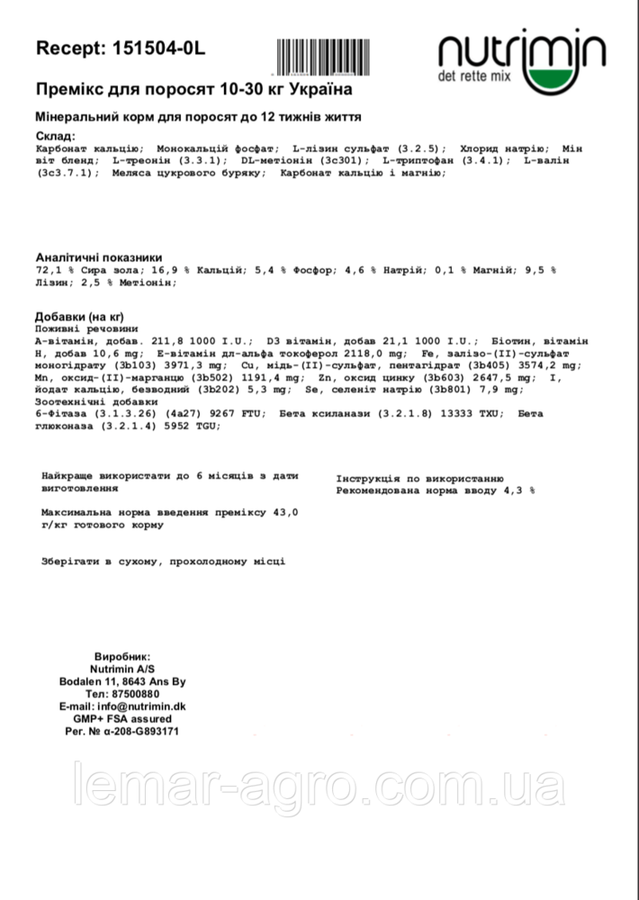 Miстить оптимально підібрані кормові