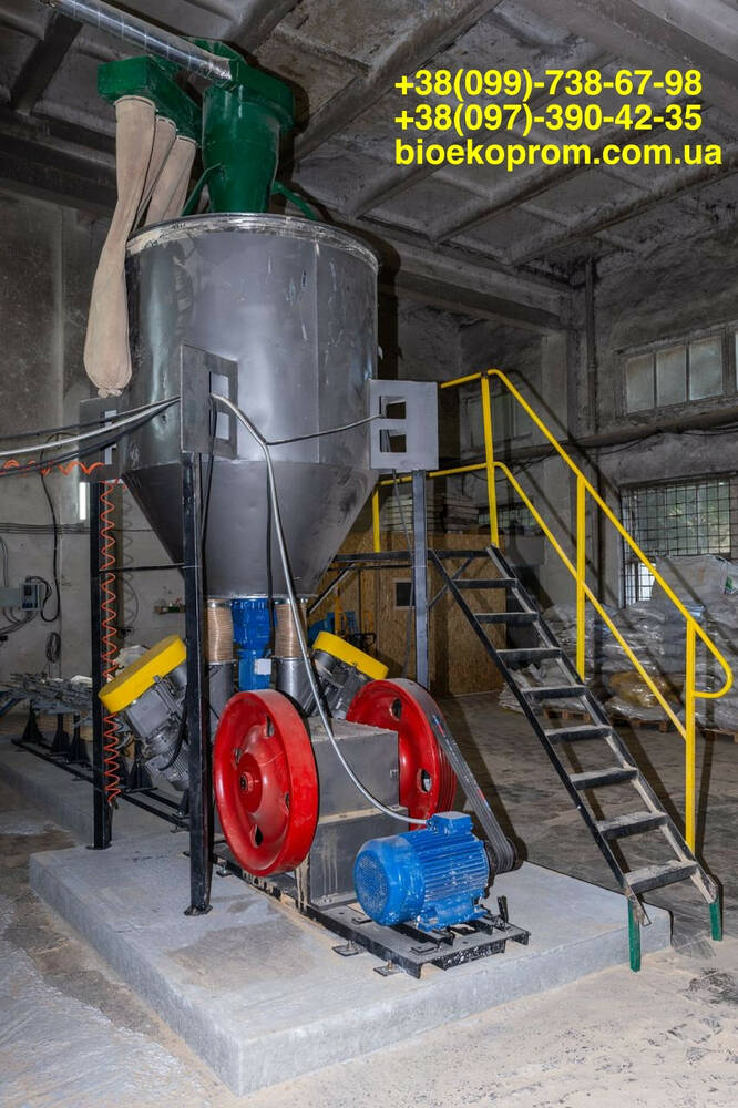 1. Брикетний прес на рамі зі шнек-дозатором 3кВт*2шт, та головним двигуном 22 кВт.