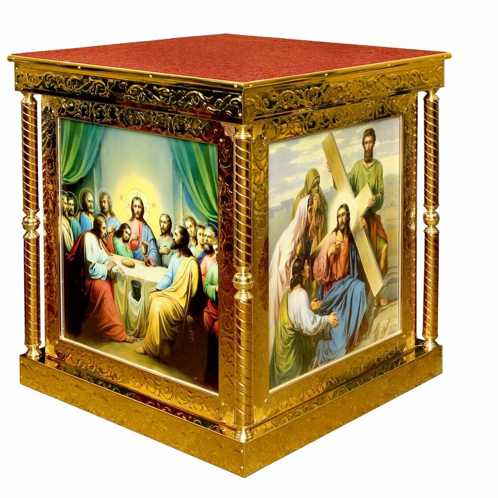 Широкий вибір церковних престолів представлений в інтернет-магазині виробника «Фавор». У нашому каталозі ви знайдете престоли необхідних габаритів, відтінків, з литими прикрасами, карбуванням, оракалом, літографією, іконами. Вироби можуть бути виготовлені з дерева, булату або вилито з латуні.