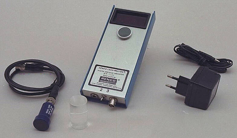 Вимірювач товщини шару сала Renco-Lean-Meater являє собою ультразвуковий вимірювальний прилад, що показує відстань від поверхні тіла до другого шару сала (шару сполучної тканини) у спинній частині свині. Місце вимірювання змазується контактною рідиною (парафінова олія). Ультразвукова голівка встановлюється на місце вимірювання й натискається кнопка приладу. Ультразвукова голівка посилає ультразвукові хвилі, які відбиваються різними шарами тканини й прилад реєструє результати. Результат у мм виводиться на цифровий монітор. Крім цього, загоряється контрольна лампочка, яка вказує на те, що були виміряні два шари сала.