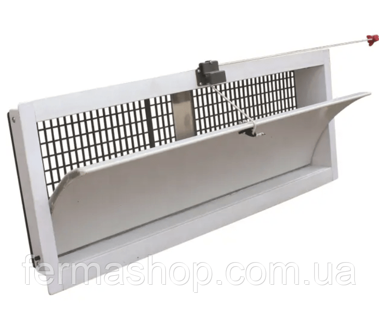Предназначен для регулирования потока воздуха в свинарниках и птичниках. Воздушные дефлекторы направляют воздух под требуемым углом. Для предотвращения сквозняков и создания правильного воздухотока, форточки располагают на одинаковой удаленности друг от друга, так чтобы подача и смешивание воздуха в помещении происходило равномерно.