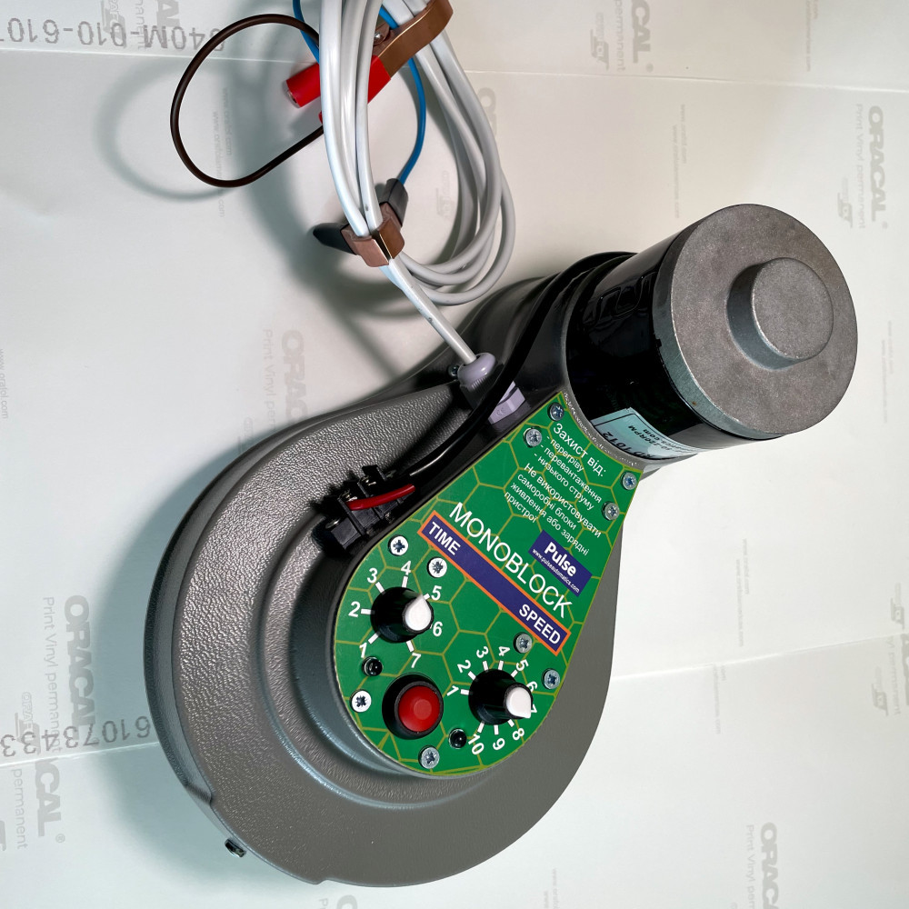 Привід ремінної "Pulse" моноблок - призначений для редукторних медогонок, вихід валу з електроприводу, вниз через центральну планку в ротор медогонки. завод «ОСЬ» (включаючи радянські варіанти медогонок з ректором) вихід валу з електроприводу, вниз через центральну планку до ротора медогонки. Діаметр валу Електроприводу Pulse RD 1012 A – 14 мм