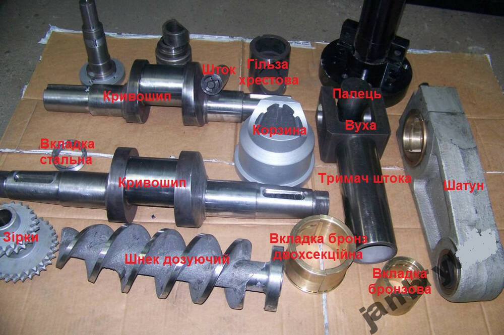 Усі критичні компоненти, такі як шнеки, матриці, вали, підшипники, гідравлічні системи, замінюються на нові оригінальні запчастини.