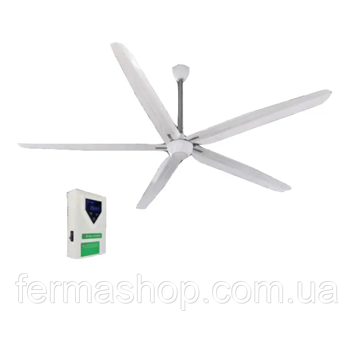Промисловий стельовий вентилятор HVLS (High Volume Low Speed) діаметром 2100 мм – це інноваційне рішення для забезпечення ефективної вентиляції та комфорту у великих приміщеннях. Ця модель поєднує високу продуктивність із низьким споживанням енергії завдяки технології HVLS. Про товар: Робоча температура: -15...45°C Мотор: 100% повний мідний дріт. Матеріал: PP, сталь. Високоміцний, низький рівень шуму та тривалий термін служби Тип приводу: прямий привод. Кількість оборотів: 200 об/хв. Продуктивність: 2500 м³/хвилину. Напруга живлення: 220 В/50 Гц, 1 фаза. Потужність: 280 Вт. Дистанційне керування. Діаметр: 2100 мм. Вага: 19 кг. Клас ізоляції IP: 55 Гарантія: 1 рік Основні характеристики: Діаметр: 2100 мм – оптимальний вибір для просторих приміщень. Тип двигуна: енергоефективний двигун з тривалим ресурсом роботи. Матеріал лопатей: міцний алюмінієвий сплав, стійкий до корозії. Технологія: рівномірний розподіл повітря з низькою швидкістю обертання. Переваги: Енергоощадність: зменшення витрат на електроенергію. Покращення мікроклімату: рівномірний розподіл повітря знижує спеку та усуває вологу. Тривалий термін служби: якісні матеріали гарантують надійність і довговічність. Зниження шуму: працює без зайвого шуму навіть на максимальних обертах. Застосування: Великі склади та логістичні центри. Приміщення для тваринництва, включаючи ферми та птахофабрики. Спортивні зали, торговельні комплекси, промислові приміщення. Чому варто обрати цю модель? Легкий монтаж та мінімальне обслуговування. Зменшення витрат на додаткове кондиціонування повітря. Забезпечення комфорту для людей і тварин.