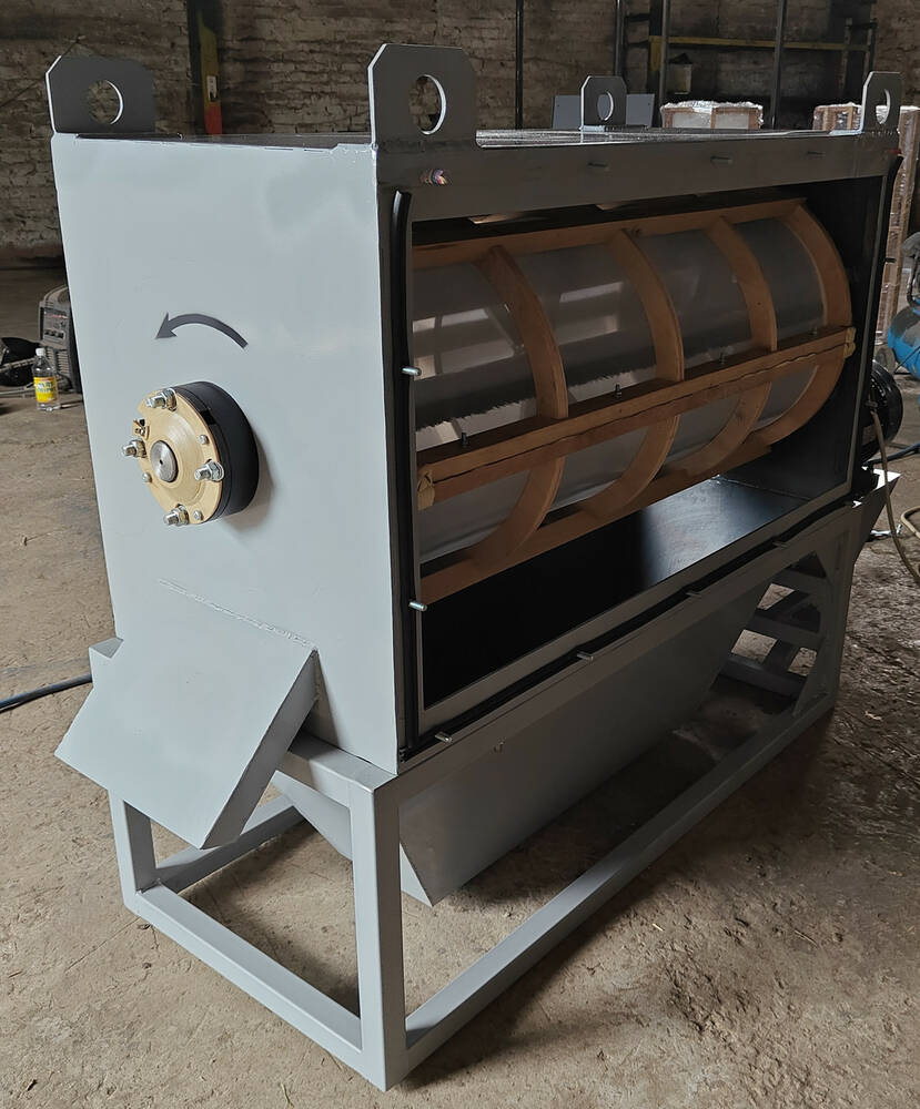 Сировина надходить у ситову камеру, де ротор з бичами створює контрольований відцентровий потік. На відміну від вібросит, тут відсутні хаотичні коливання — матеріал рухається рівномірно, а навантаження на сито розподіляється по всій довжині. Бичі розпушують грудки, руйнують агломерати, прискорюють проходження частинок через чарунки.