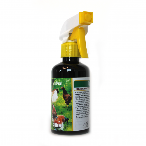 Засіб призначений для створення дезодоруючого та відлякуючого ефектів, що дозволяє запобігти явищам канібалізму у птиці.