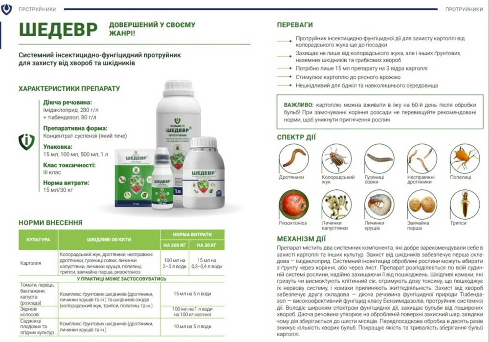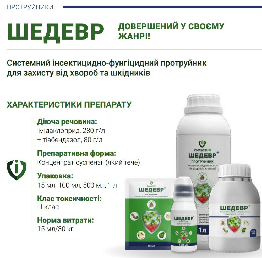 Шедевр - Системный инсектицидно-фунгицидный протравитель для защиты от болезней и вредителей.