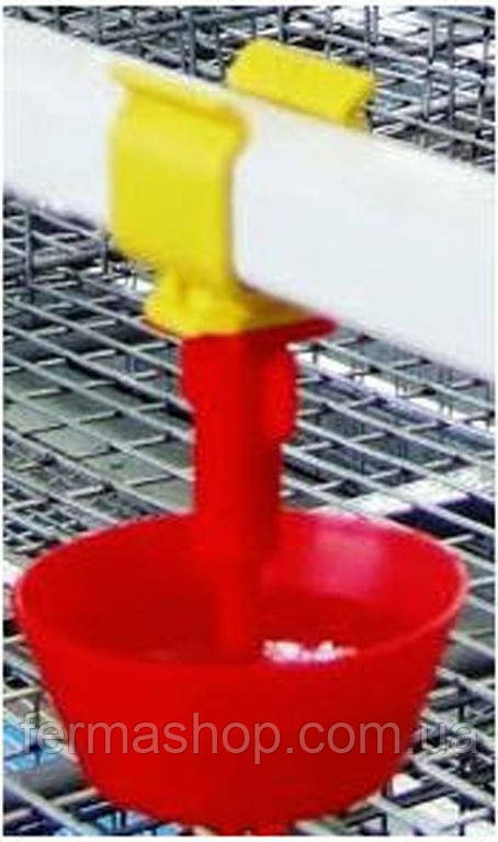 В птичнике в первые 10 дней , монтируется с установленным ниппель. Благодаря пружинному механизму самостоятельно наполняется водой. Легко крепится к квадратной или круглой трубе.