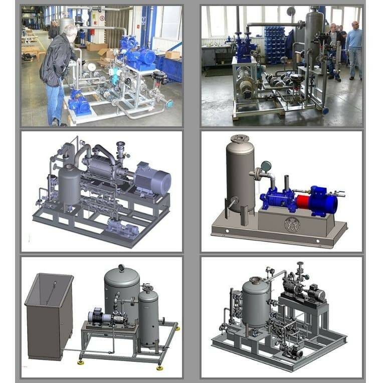 Водокільцеві вакуумні насоси серії PW1-21 – PW5-24 є двоступеневими вакуумними насосами, головною особливістю яких є на відміну від одноступінчатих насосів, досягнення більш глибокого вакууму (33-40 мбар абс.). Максимальна продуктивність і ефективність в діапазоні від 100 - 200 мбар.абс. Ці насоси мають вбудований антикавітаційний клапан між ступенями. Вони надійні, прості в обслуговуванні, з їх допомогою можна відкачувати практично будь-яку газове середовище або пар. Вакуумні насоси призначені для всмоктування і перекачування сухого газу з температурою до 150°С і насичені парами гази, що відрізняються тим, що їх температура не перевищує 100°С, з можливістю застосування робочих рідин з в'язкістю до 60 мм2/сек і щільністю 800 - 1200 кг/м3, температура води на виході з насоса не повинна перевищувати 80°С. Hydro-Vacuum виробляє одноступінчасті і двоступінчасті вакуумні водокільцеві насоси, серії PW. У насосах серії PW - насос і двигун кріпляться на загальній опорі. Крутящий момент від дви