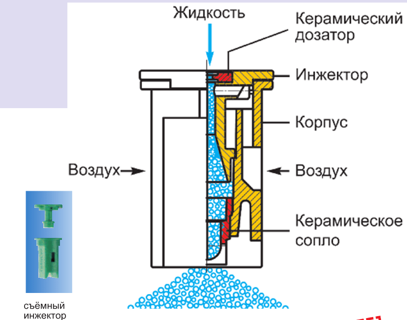 При давлении выше 3 бар уступают известным антисносовым распылителям ID и IDN по причине более мелкого спектра капель