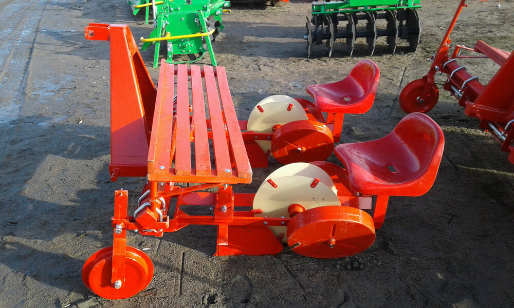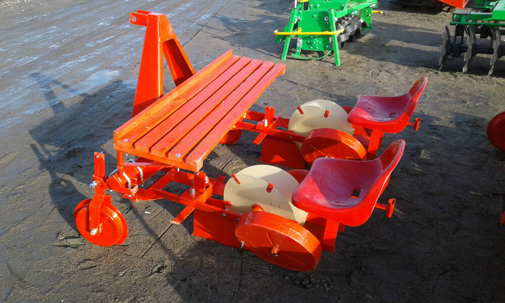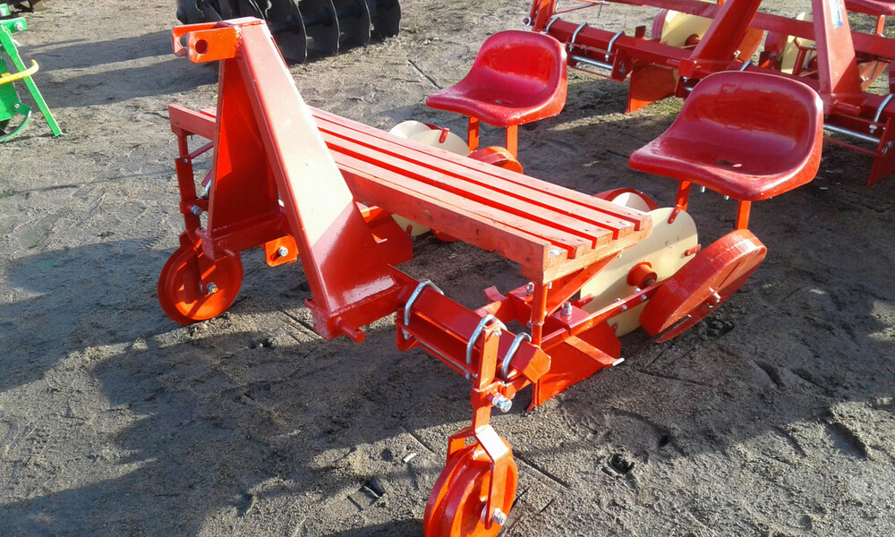 Конструкція рассадосажалкі проста, і при цьому вона надійна. Висаджувати рослини можна на відстанях починаючи від 50-ти і закінчуючи 115 сантиметрами. Диски, які висаджують розсаду, мають отвори, які розташовані через 600-т, 900-т і 1200-ти міліметрів. У них ставляться маркери, залежно від відстані, яке треба між саджанцями. На розсадосажалці є платформа, на яку встановлюється ящик з розсадою. За допомогою такого апарата можна розсаджувати, дуже просто капусту, томати, полуницю і багато чого іншого. Також можна за допомогою неї розсаджувати дерева.