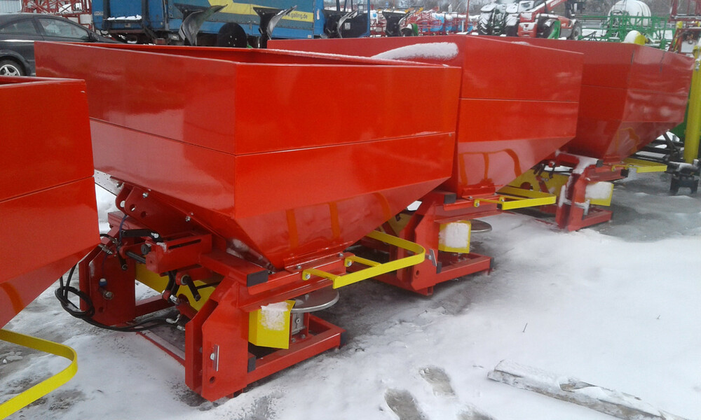 Розкидач добрив Jar-Met 1000 л призначений для поверхневого внесення гранульованих і пилоподібних добрив на ґрунтах, луках, стернях і травах. Для кріплення цих машин використовується триточкова система гідравлічного підіймача трактора. Агрегатується до тракторів МТЗ 80, МТЗ 82, ЮМЗ. Бункер сталевий.