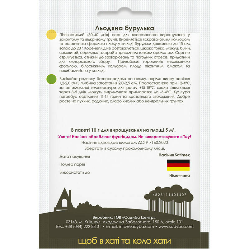 Популярний пізньостиглий урожайний сорт, призначений для вирощування на водопроникних легких ґрунтах. Від посіву до збирання урожаю проходить 35-40 днів. Коренеплоди оригінальної конічної форми, сніжно-білого кольору, мають середньогострий смак. Сорт не схильний до стрілкування. Вирощувати можна з ранньої весни і до осені, висіваючи насіння у зволожений ґрунт на глибину 1-2 см.