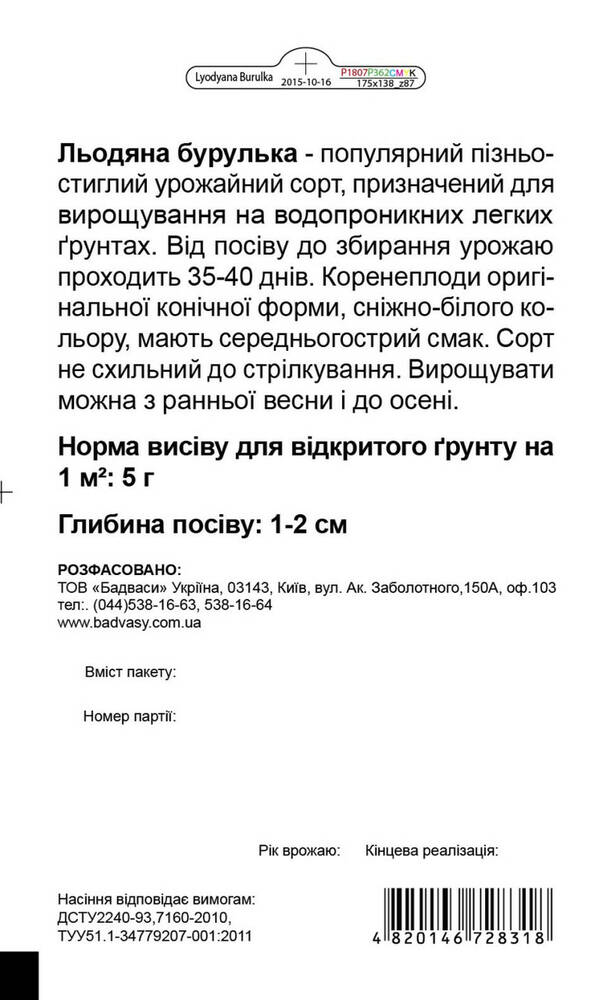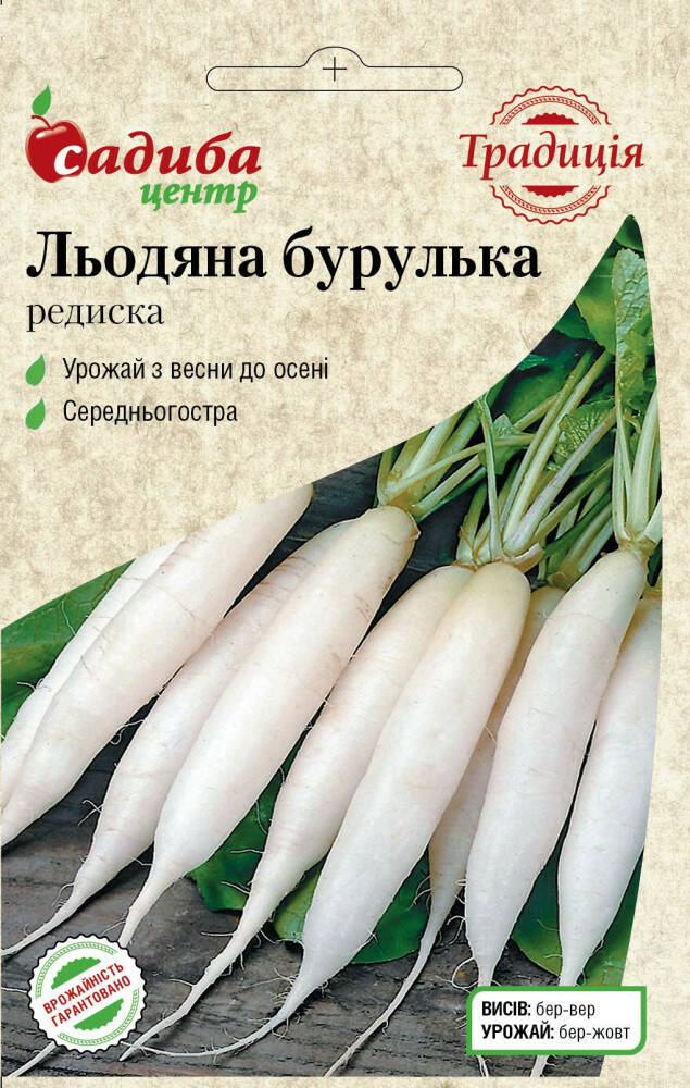 Популярний пізньостиглий урожайний сорт, призначений для вирощування на водопроникних легких ґрунтах. Від посіву до збирання урожаю проходить 35-40 днів. Коренеплоди оригінальної конічної форми, сніжно-білого кольору, мають середньогострий смак. Сорт не схильний до стрілкування. Вирощувати можна з ранньої весни і до осені, висіваючи насіння у зволожений ґрунт на глибину 1-2 см.